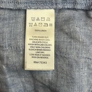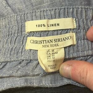 Christian Siriano 100% linen chambray pants in size Medium. Designed with a breathable, natural fabric perfect for warm weather, these wide leg trousers blend effortless style and comfort. Featuring a polished flat front waist with elastic shirring at the back, curved hem detailing, and functional side pockets, they offer a flattering silhouette with a relaxed, coastal vibe. Ideal for minimalist style lovers, beach vacations, and resortwear edits. Pair with a crisp white tank or a breezy button-up for an easygoing, elevated look. A great pick for quiet luxury, natural fiber lovers, or fans of the linen trend. Approximate measurements: Waist 16”, Rise 12”, Inseam 27”, Length 37”. Size Medium (US M / UK M / EU M).