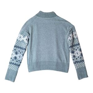 Christian Siriano, Mock Neck, Snowflake Sweater, Green, Blue, Size Small, Pre-Loved, Soft, Warm, Holiday, Festive, Winter, Cozy, Casual, Designer, Knitwear, Pullover, Layering, Comfortable, Chic, Seasonal, Fashion, Trendy, Cute, Stylish, Everyday Wear