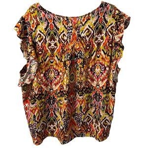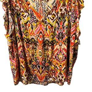 Christian Siriano New York Womens Ruffle Sleeve Ikat Print Blouse Sz 2X Rayon Mu