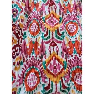 These Christian Siriano Pants are a stylish addition to any woman's wardrobe. The wide-leg design and pull-on closure make for easy and comfortable wear, while the linen blend fabric adds a touch of boho chic. The geometric pink pattern and elastic waist accents give these pants a trendy and unique look, perfect for various occasions from casual outings to parties. With a high-rise waist and pockets for added convenience, these pants are a versatile option for all seasons.