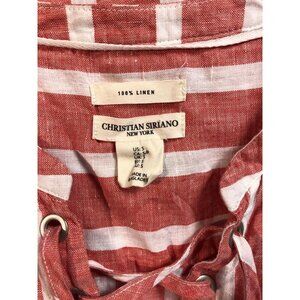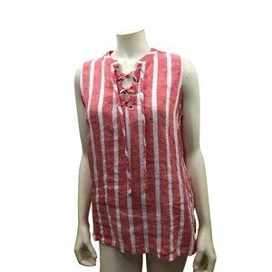 Christian Siriano Red & White Striped Sleeveless Lace-Up Linen Top Sm