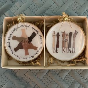 Christian Siriano Set 2 Christmas Ornaments Kind Love Peace Diversity Sign ASL