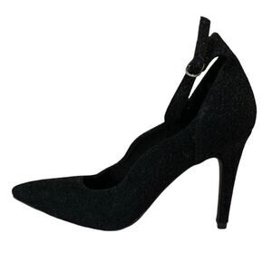 Christian Siriano Shoes Women's Size 5.5 Pointed Toe Slip On Black Pump Ankle Strap Glitter Black Heel