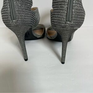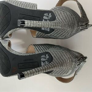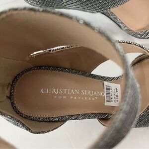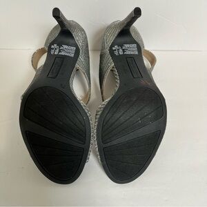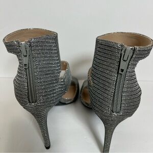 Christian Siriano Silver Sparkle Ankle Wrap Open Toe Heels