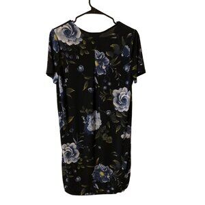 Description: Womens navy blue with light blue flowers lightweight short sleeve knee length dress.