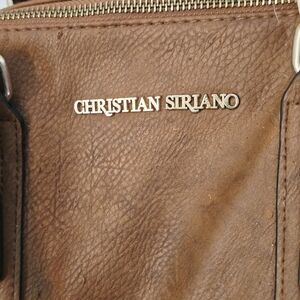 Stylish Christian Siriano shoulder bag in a warm tan hue. Features sleek design with dual zippers. Perfect for everyday use.