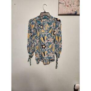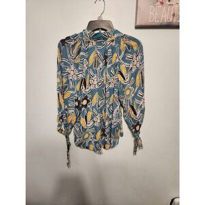Christian Siriano Top Womens Small Blue Yellow Whimsical Floral Boho Peasant