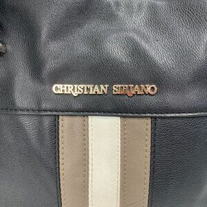 Christian Siriano Vegan Leather Satchel Black/White/Tan Stripe 16"W x 11”