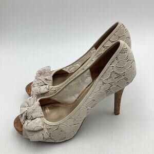 Christian Siriano White Lace Peep Toe Heels Size 10 Formal Bow Detail