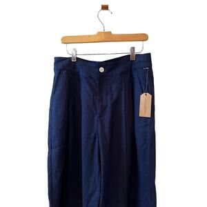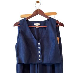 New Christian Siriano Wide Leg Linen Pants & Vest Set Navy Blue, size 10. High Waisted Wide Leg Pants Set with textured pleats and pockets paired with a chic button front waistcoat. Up your brunch game!
