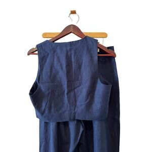 Christian Siriano Wide Leg Linen Pants & Waistcoat Vest Set Navy Blue 10
