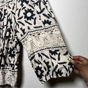 Christian Siriano Women Linen Top XL Cream Black Crochet Lace Cottage Boho