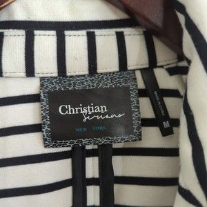 Christian Siriano Womens Black Striped Ruched Sleeves Pocket Blazer Coat Size M.