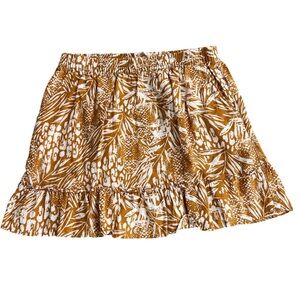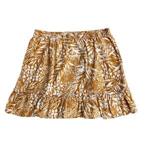 Elevate your wardrobe with this stylish tropical print skirt. Featuring a beautiful blend of brown and white, this skirt is perfect for any occasion. Pair it with your favorite top for a chic look.