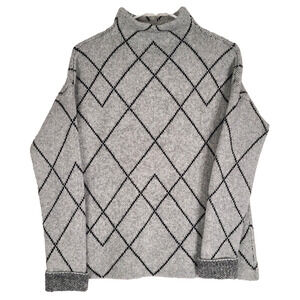 Christian Siriano XL Sweater Mock Neck Wool Blend Diamond Check Pattern Gray EUC
