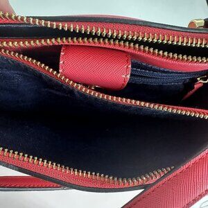 This structured tote offers a professional aesthetic while providing ample space for daily essentials. The bold pink color and gold accents deliver a sophisticated touch.