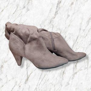 Christian Siriano sz 11 grey slouch ankle boots faux suede pointed toe, VGUC