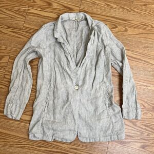 Christian Siriano women's size large cream black minimalist 100% linen blazer