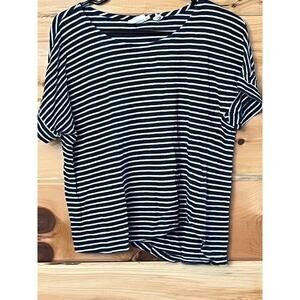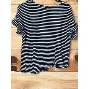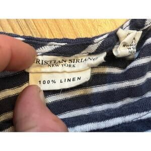 Christian Siriano women's striped linen shirt blouse. Navy.white. Size Medium
