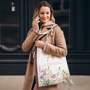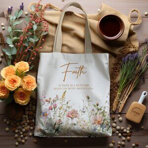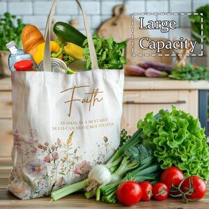 Christian Tote Bag Floral Faith Mustard Seed Bible Verse Canvas Reusable Gift