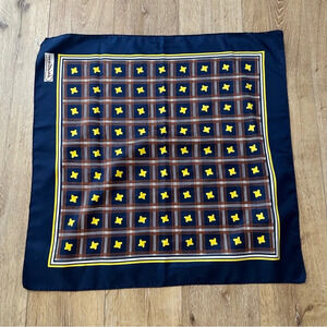 Christian Vintage Navy & Yellow Silk Scarf Made in Italy GUC