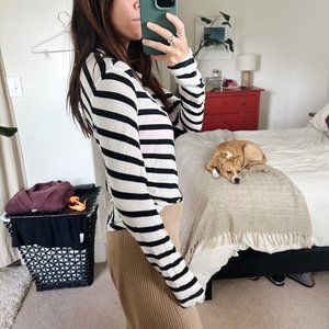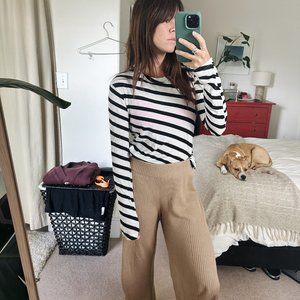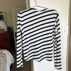 In like-new condition. Suuuuper soft and comfortable striped tee. Really flattering on, lightweight. Fits like a S/M.