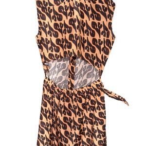 Christian Wijnants Women's Size 36 Collared Shirt Dress Tan Brown Abstract Wrap