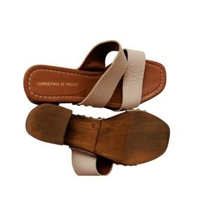 Christian di Riccio leather platform sandal chunky heel nailhead trim sz 37