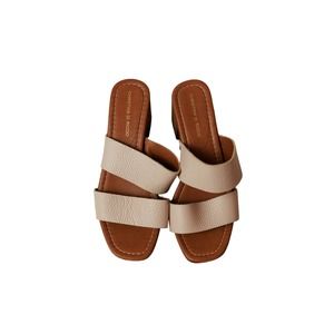 Christian di Riccio leather platform sandal chunky heel nailhead trim sz 37 or 6.5