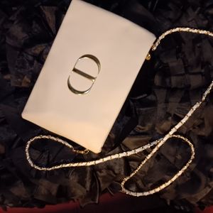 NWOT christian dior pouch converted into shoulder and/or crossbody bag. non branded chain is thick and heavy, very pretty and unique. made of faux leather(beige)but looks classy as heck! I have a lot of different purse straps to choose from, message me if another is desired.