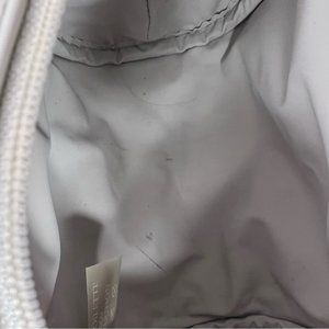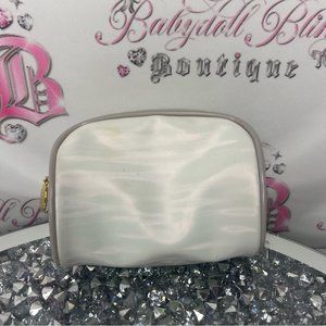 Christian dior parfums makeup bag small white stripe shimmer pattern grey gold hardware. Small mini makeup bag. Zipper pull is beautiful. There is some marks on this from use but they are faint. Most likely will come out with some love and care π§Ό π©·ππ©΅