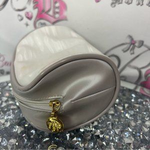 Christian dior makeup bag small white stripe shimmer pattern grey gold hardware
