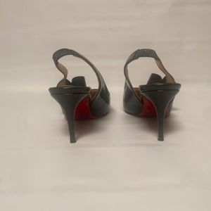 Worn once .These are a stunning and authentic pair of Christian louboutin Clare Nodo slingback 80 pumps.This style has a modern , sculptured bowen making these low comfortable heels elegant and timeless.