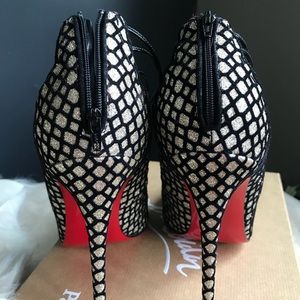 Up for sale a pie of gorgeous Christian Louboutin Black Gold Glitter Gortik Pointed Toe Cage Pumps Boots/Booties size 40 in excellent used condition used twice bottoms have been repainted no damaged to the upper glitter a little bit of fading in insole comes with 1 dust bag 100% authentic or your money back :)NO LOWBALLERS!!