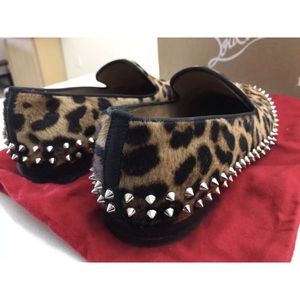 Cheetah print loafers spikes excellent condition preowned Christian louboutins size 43 100 percent authentic comes with box & dust bag red bottoms men's