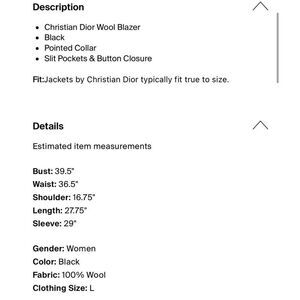 Christian Dior Authentic Solid Black Wool Long Sleeve Blazer Jacket 10 Medium