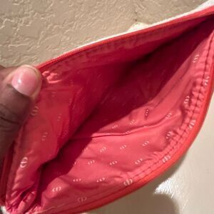 Christian Dior Beauty Terry Cloth Makeup Bag White Coral Stripe Cosmetic Pouch