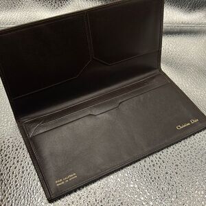 Christian Dior Bi-Fold Long Wallet Brown Calfskin Leather Checkbook Cardholder