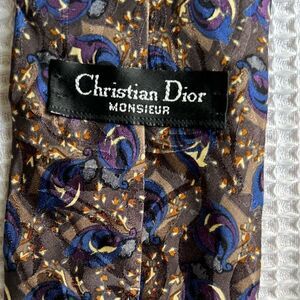 Christian Dior Brown Blue Men Tie