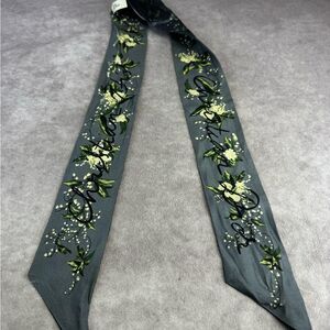 Christian Dior Mitzah Gray Floral Blue Silk Scarf Twilly