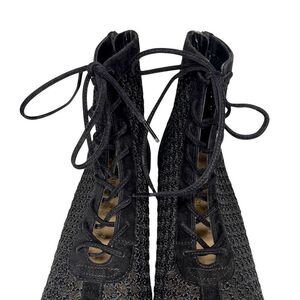 Christian Dior Naughtily-d Black Fishnet Lace Up Ankle Booties EU 37 Knit Suede