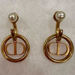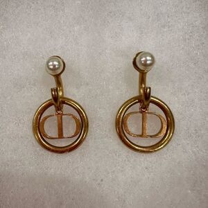 Christian Dior Pearl Stud Dangle CD Signature Earrings. Scuffing and signs of wear as shown in photos. Overall great condition.