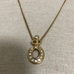 Christian Dior Vintage Logo Gold Plated Crystal Oval Pendant Necklace. 1990’s.
