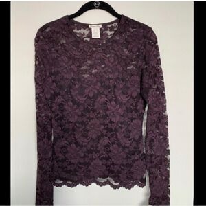 Christian Dior Vintage Plum Purple lace crew neck stretch blouse
