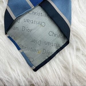 Christian Dior silk necktie. Blue striped pattern. Heavier material. 3” x 54”. One mark on interior.