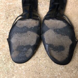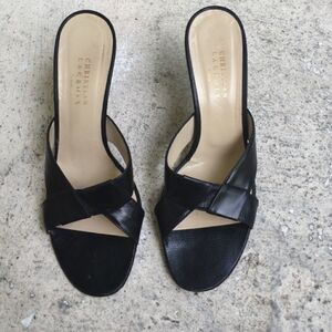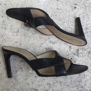 Black mules are in good condition but have one tiny scuff on one heel and could use new taps. They're a size 9 but fits like an 8 1/2