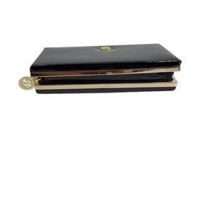 Christian Lacroix Evening Clutch Black Vegan Faux Patent Leather Framed Zip