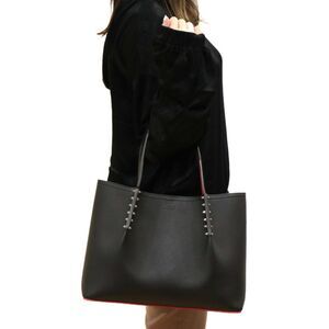 Christian Louboutin Small cabaroque ladies tote bag spike studs calfskin leather red silver metal fittings black hook closure