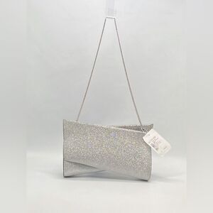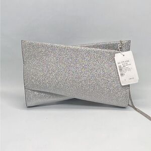 Made in Italy, Christian Louboutin's Loubitwist clutch is designed in a twisted silhouette of sparkling glitter-covered calf leather. This piece is accompanied by a dainty chain strap.