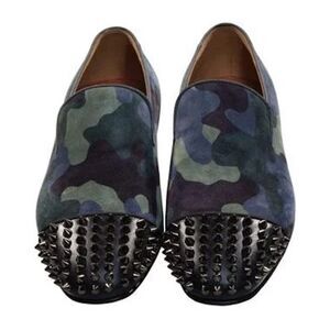Christian Louboutin Spooky Flat Camouflage Stud Suede Loafer 43.5 Blue